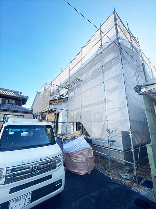 建物をアルミ箔で覆われた高性能断熱材ですっぽり包み込み、徹底した気密処理を施した完全な「外張断熱の家」。