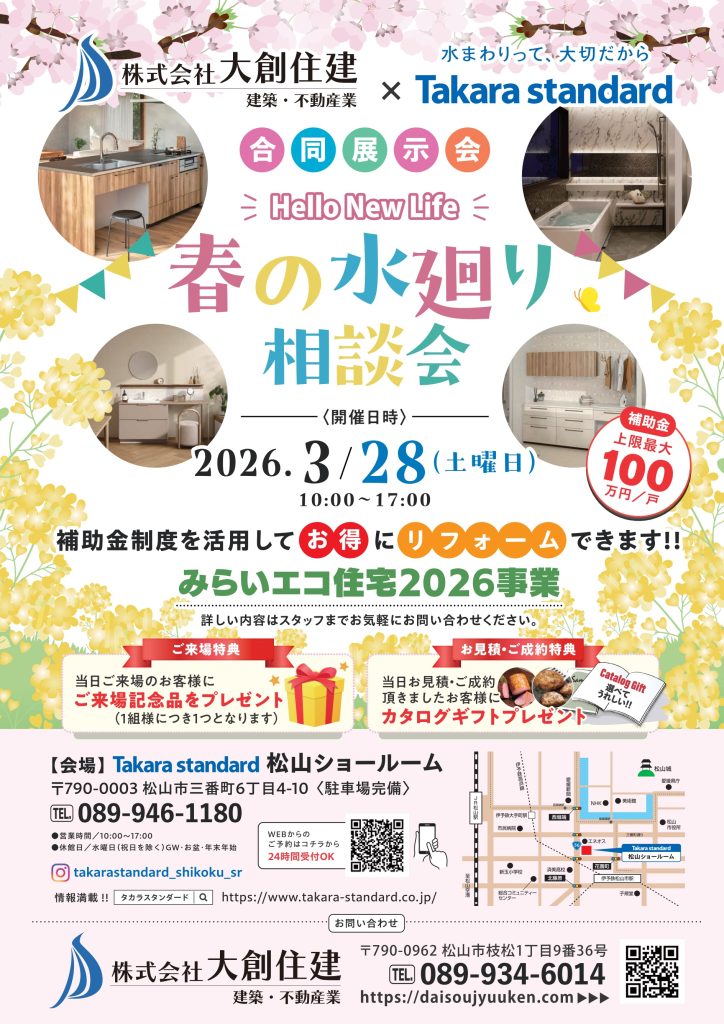 2026.3.28(土)タカラスタンダード松山ショールームにて春の水廻り相談会開催!!
