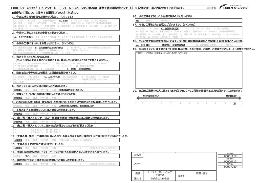【R8年1月度お客様の声】I様邸トイレ便器(1F・2F)取替え工事