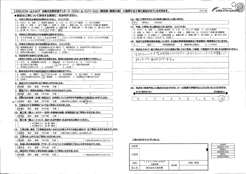 【R8年1月度お客様の声】S様邸リフォーム追加工事