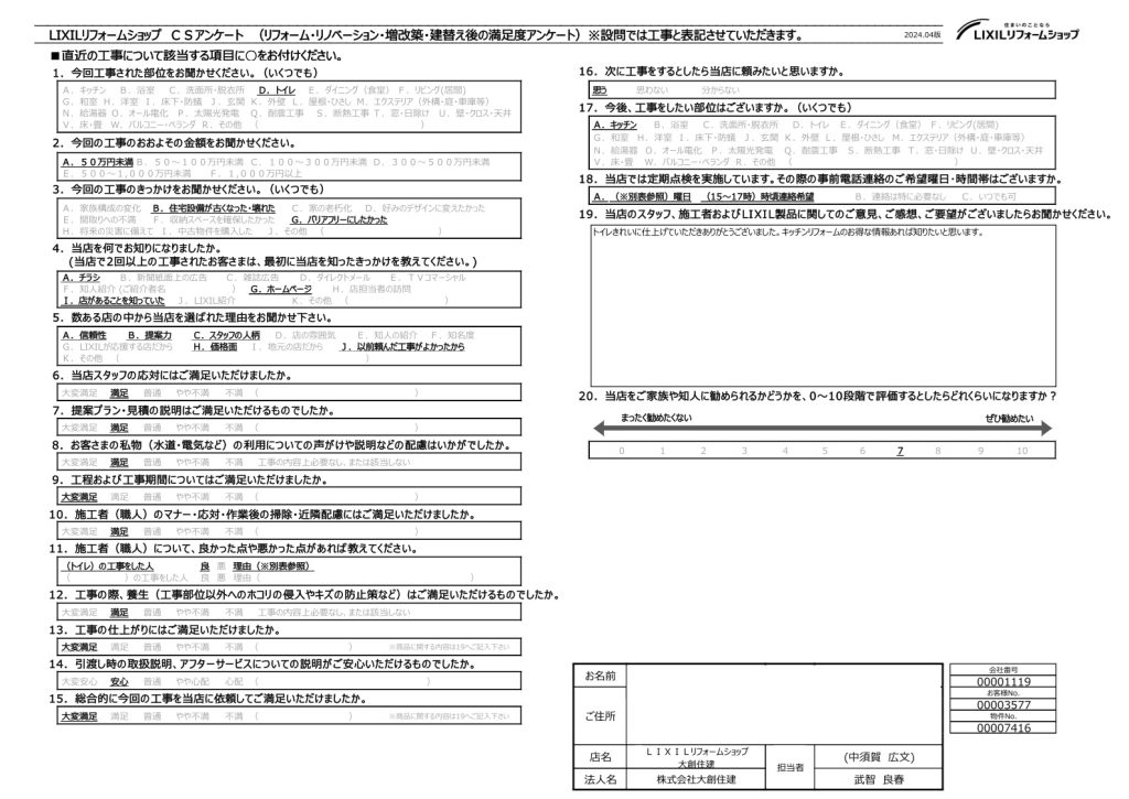 【R8年3月度お客様の声】S様邸1階トイレ改修工事