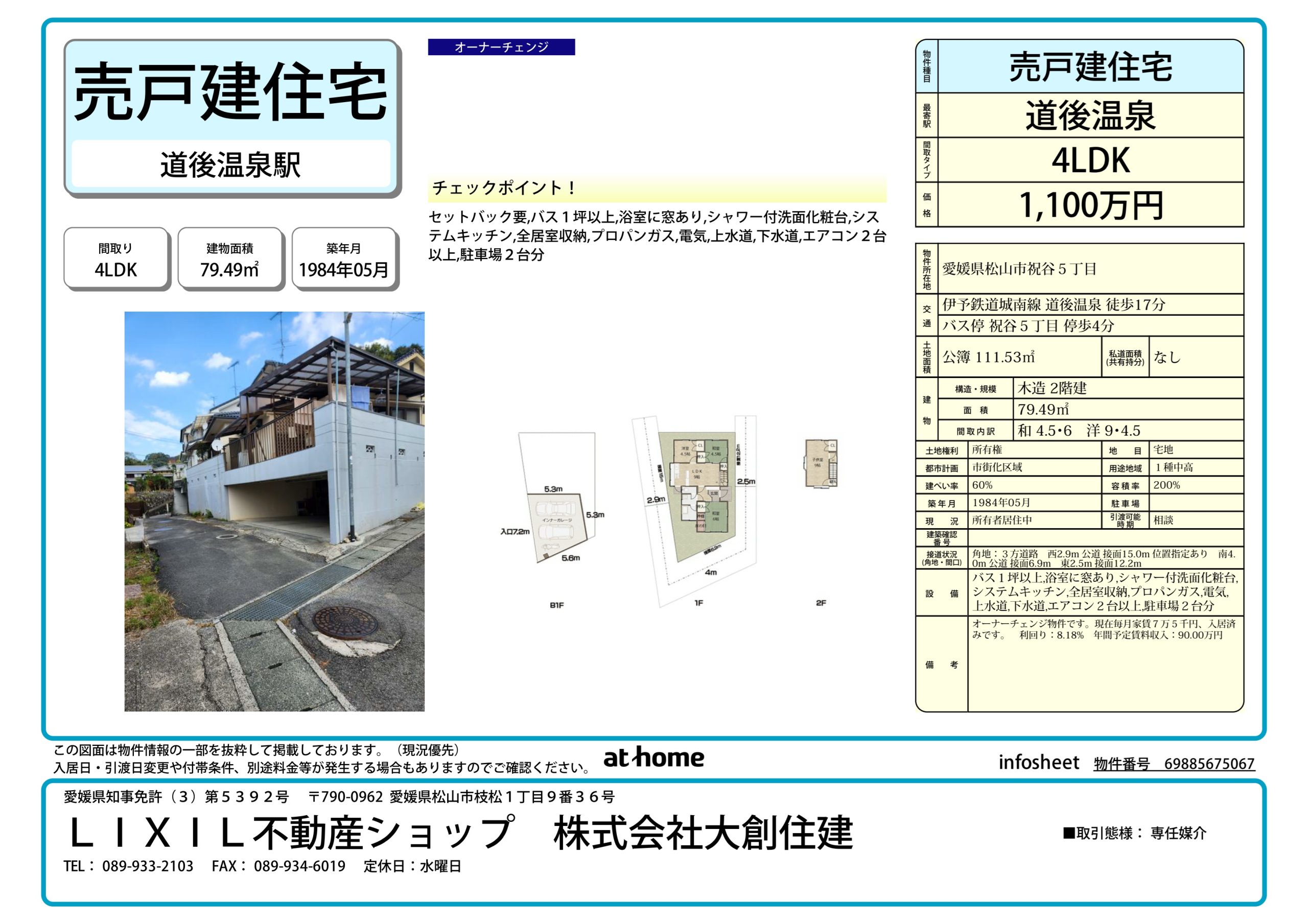 【NEW】祝谷5丁目 売住宅 1,100万円