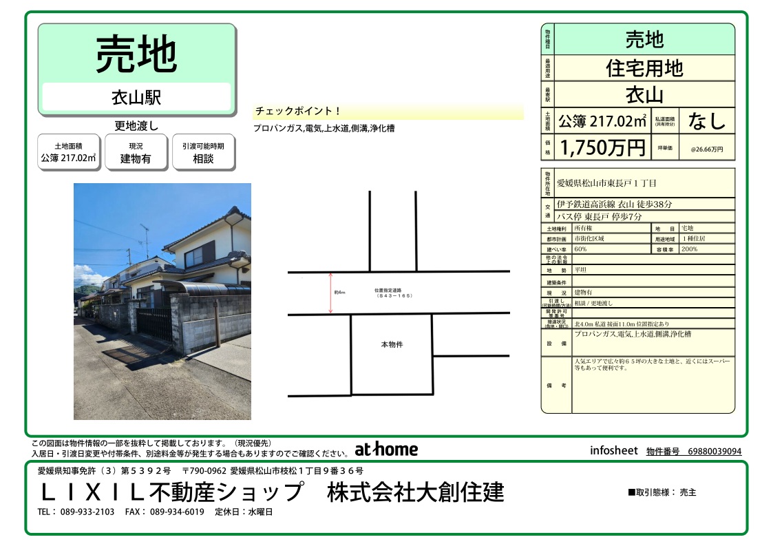 【NEW】松山市住吉町2丁目 売店舗 1,290万円