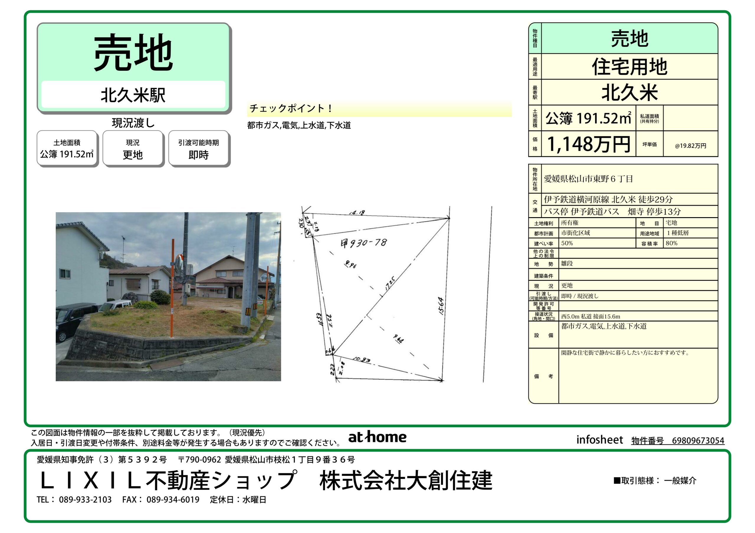 【2026.02.06 価格改訂】東野6丁目 売土地 1,148万円