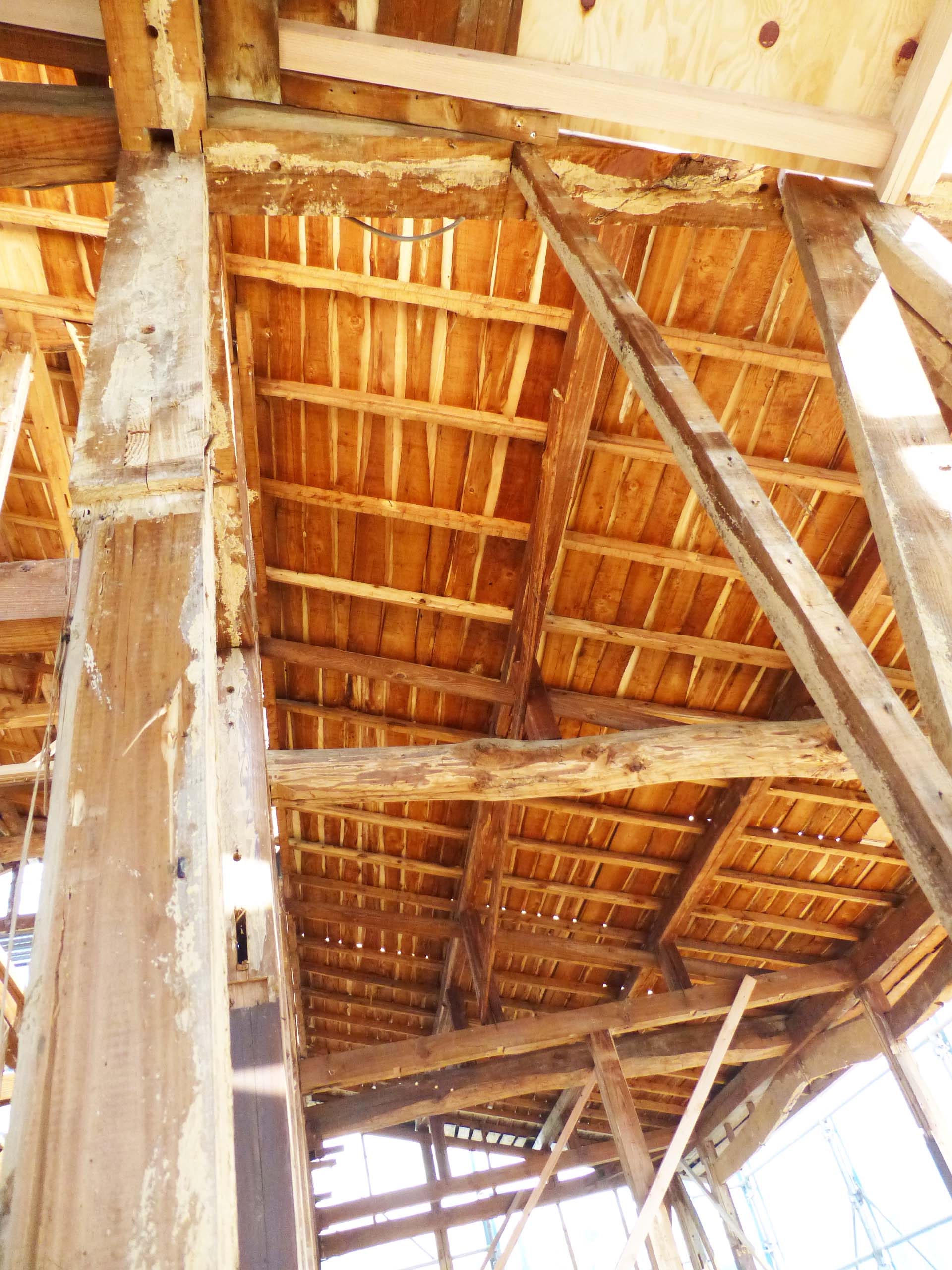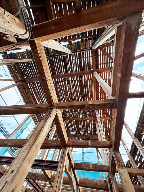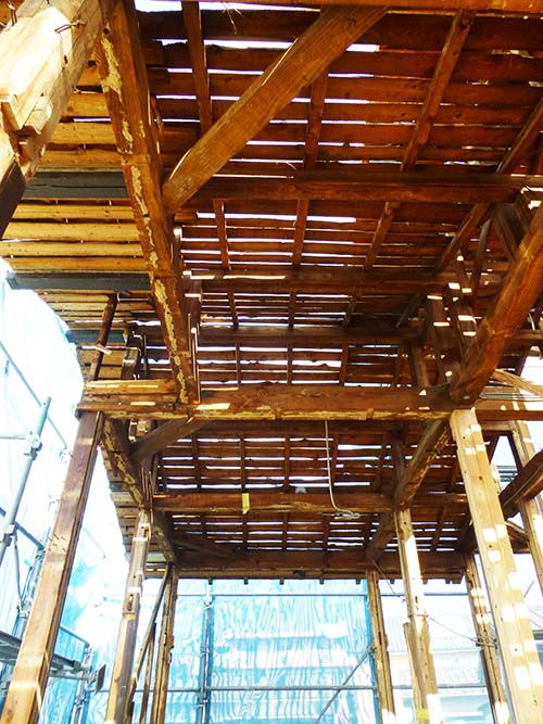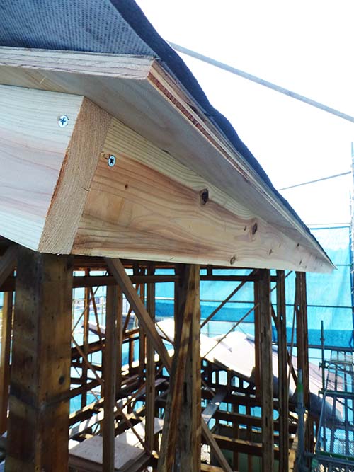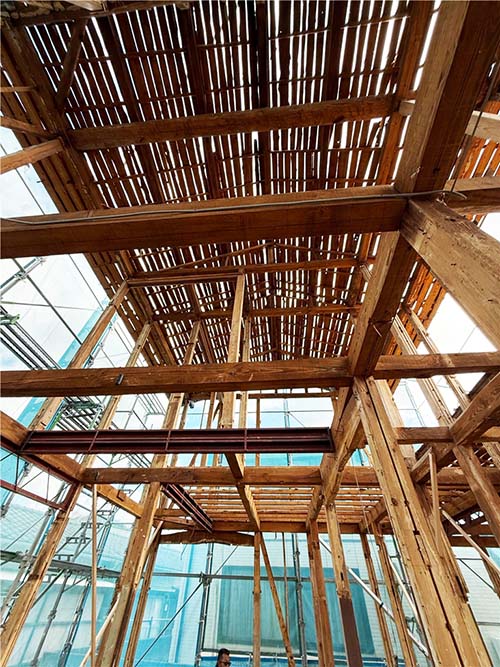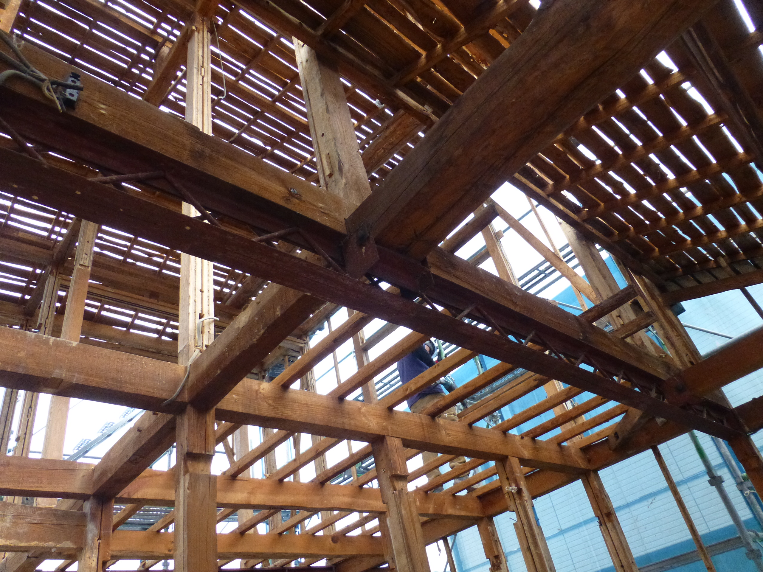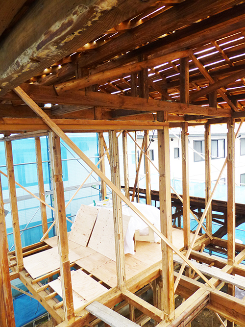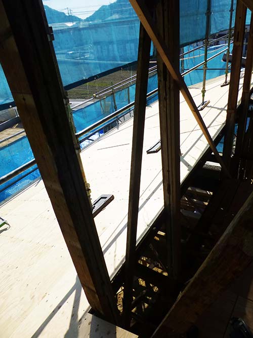 大工さんの作業の邪魔になる事なく足場を昇り降りできる絶好の機会なので、上のほうにも上がって写真を撮ってきました!