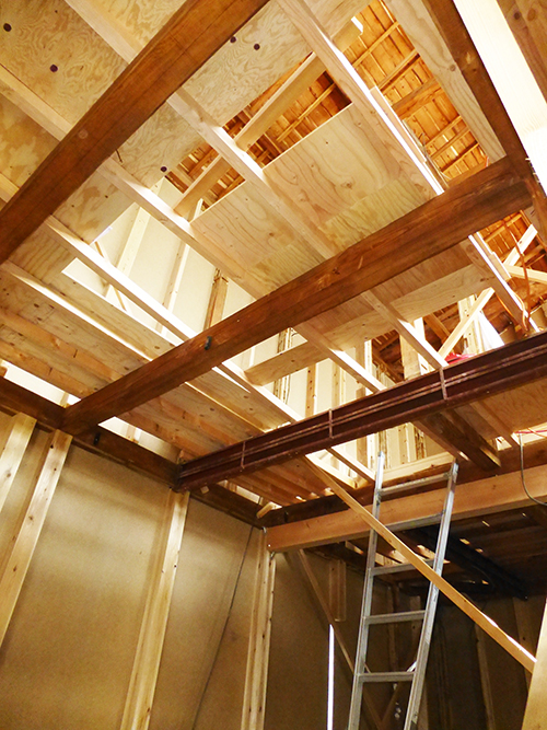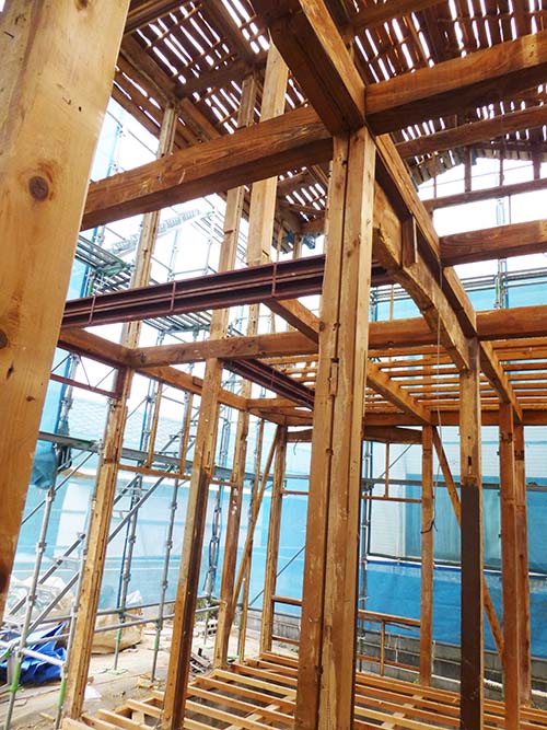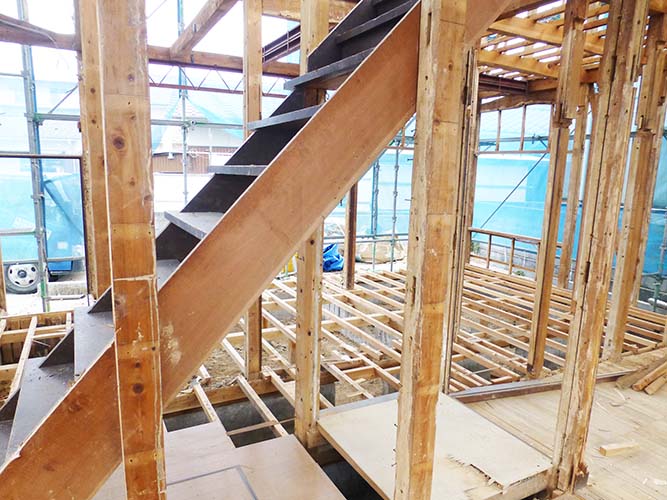 昨日と同じくお昼過ぎ頃に現場に伺うと、早くも2階部分に着手されてました!