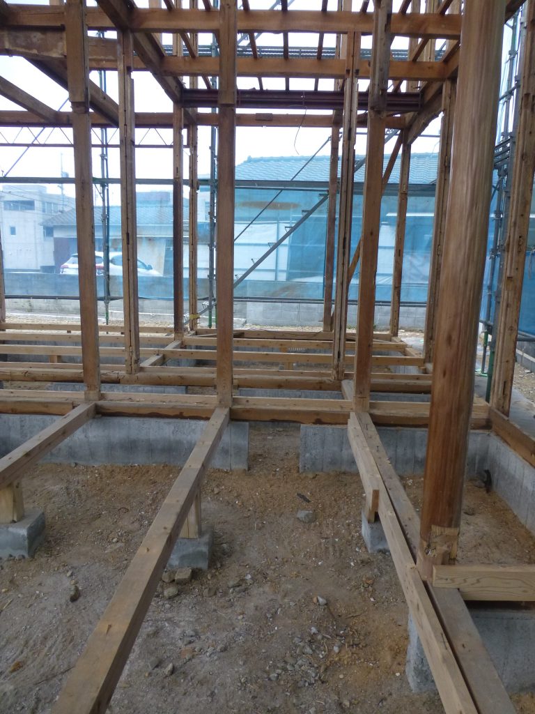 本日は土曜日で、現場に行ってみると業者さんはお休みでいらっしゃいませんでしたが、道具や廃材などもすべて綺麗に片づけられていて、おうちも屋根と床を残して、すべて柱のみとなっていました!