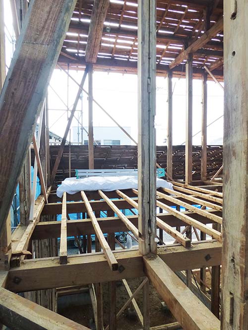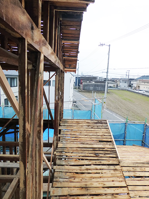 2月3日に足場設置工事がなされ、本日は床の解体工事が進んでいました。