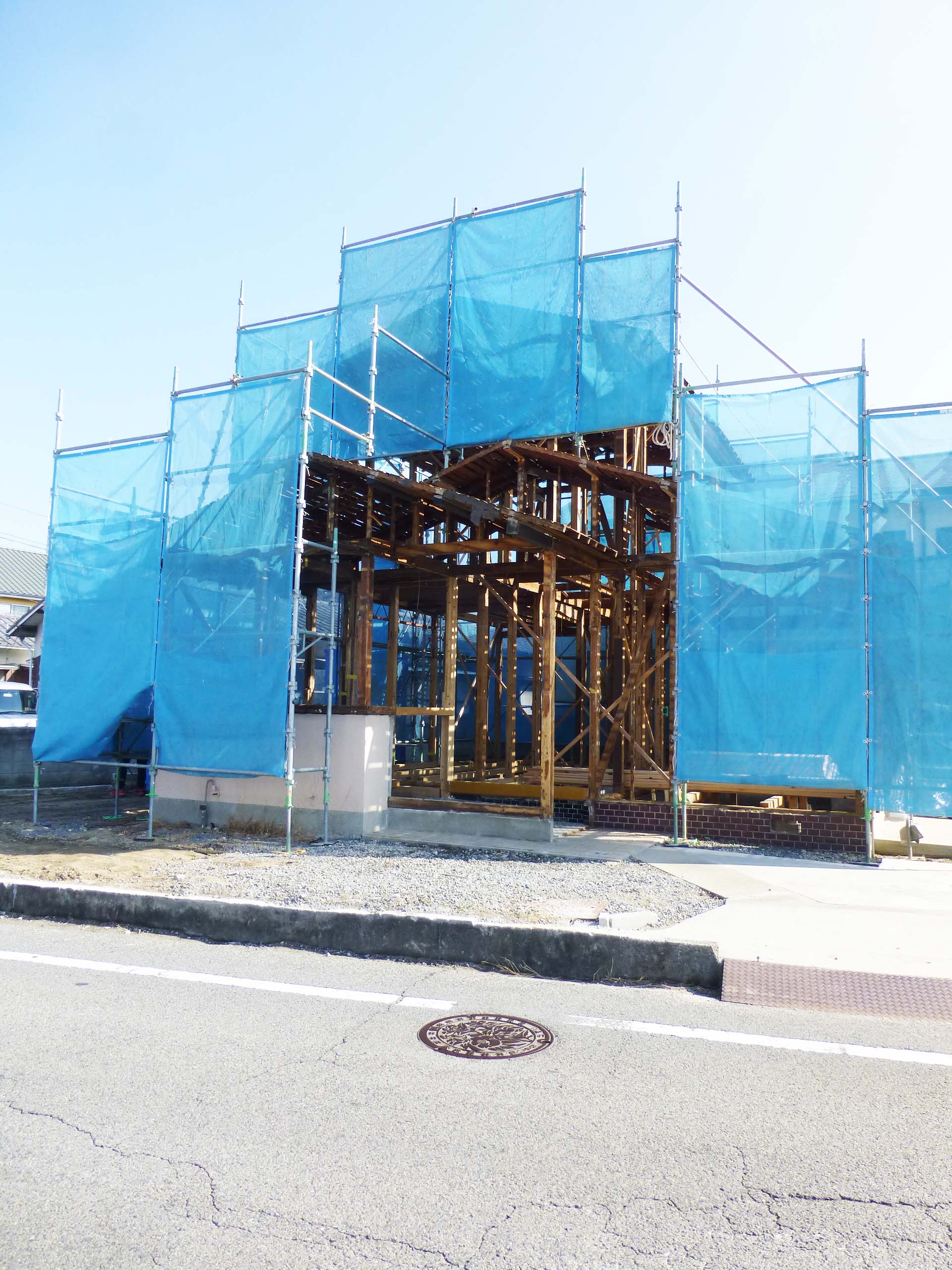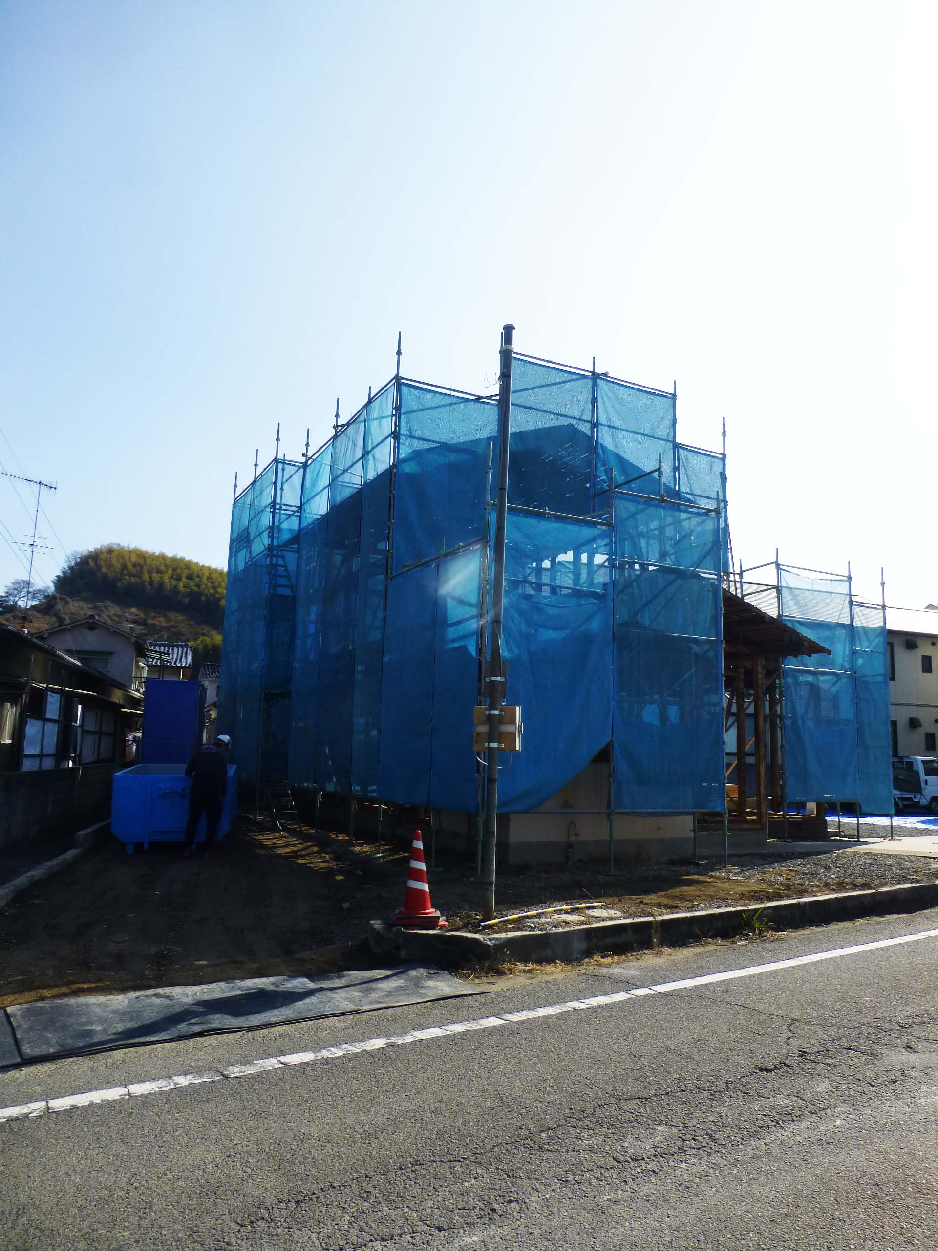雨等の対策で、周囲はビニールシートできっちり覆われています。