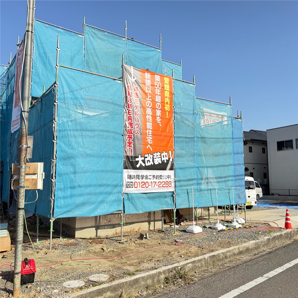 築50年以上の住宅を、LIXILが開発した高性能断熱材「スーパーウォール」を使用した断熱工法「SW工法」を採用し、耐震・断熱・気密性に優れた住宅にフルリノベーションするという工事をしている真っ最中のモデルハウスです!^^