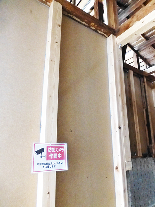 2階も含めて窓は全部撤去され、室内が奥まで見渡せるような状況になっています。