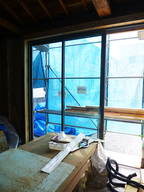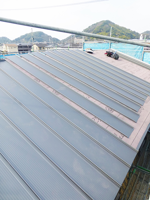 スーパーウォールの設置も着々と進んでいますが、本日行ってみたら、屋根材と窓もどんどん設置されていっていました!