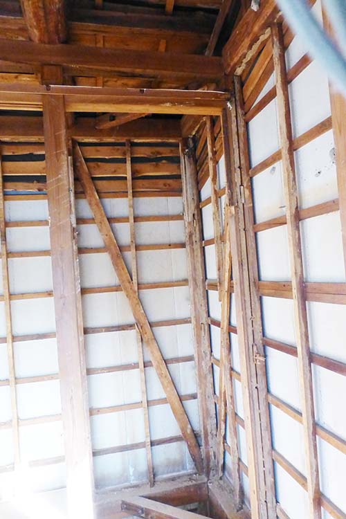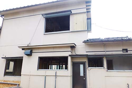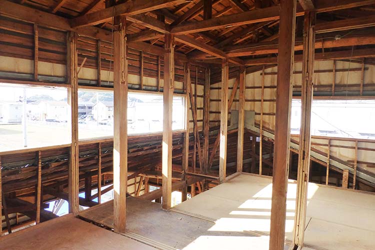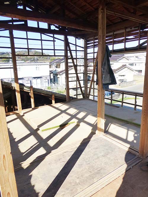 2階も含めて窓は全部撤去され、室内が奥まで見渡せるような状況になっています。