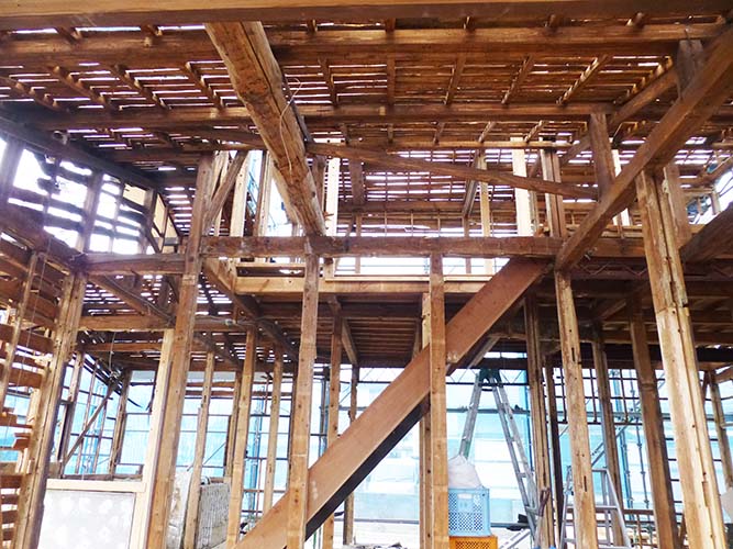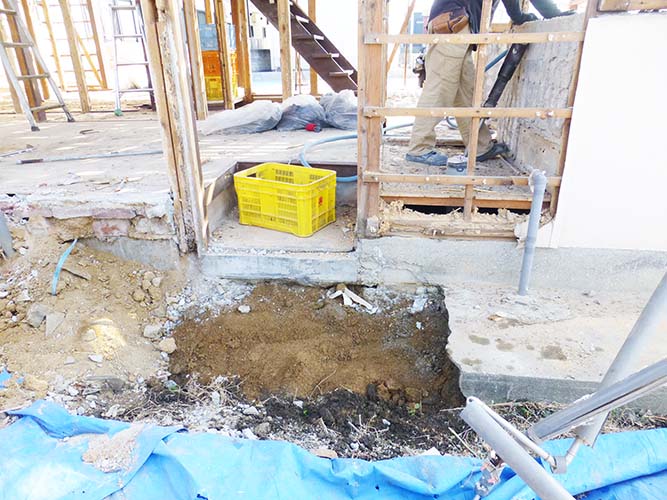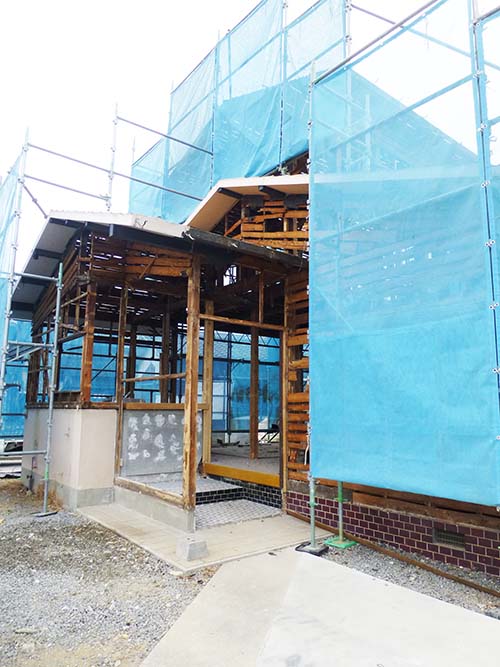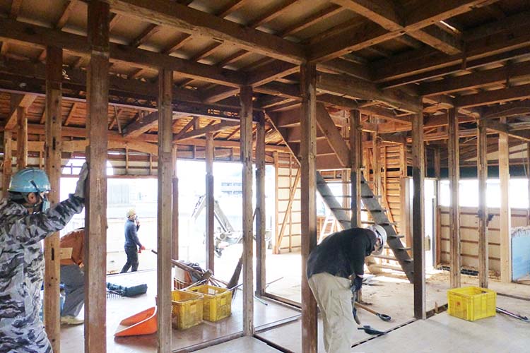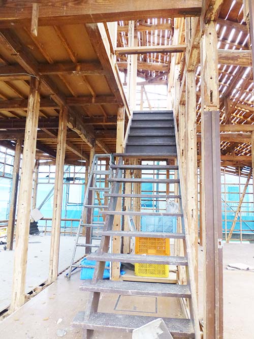 2月3日に足場設置工事がなされ、本日は床の解体工事が進んでいました。