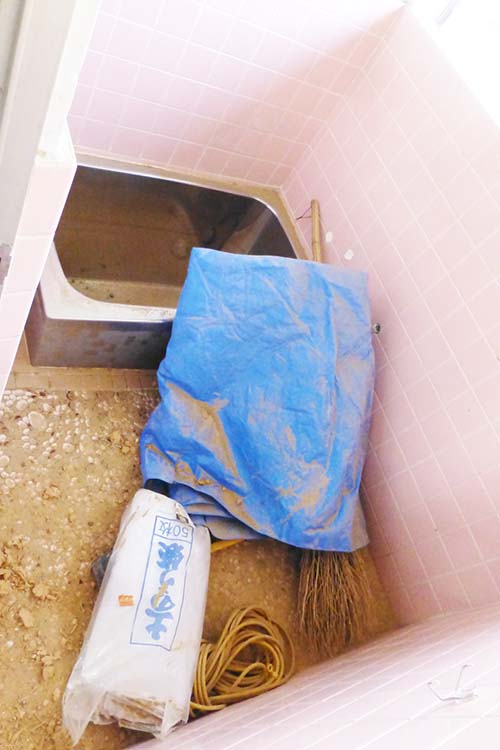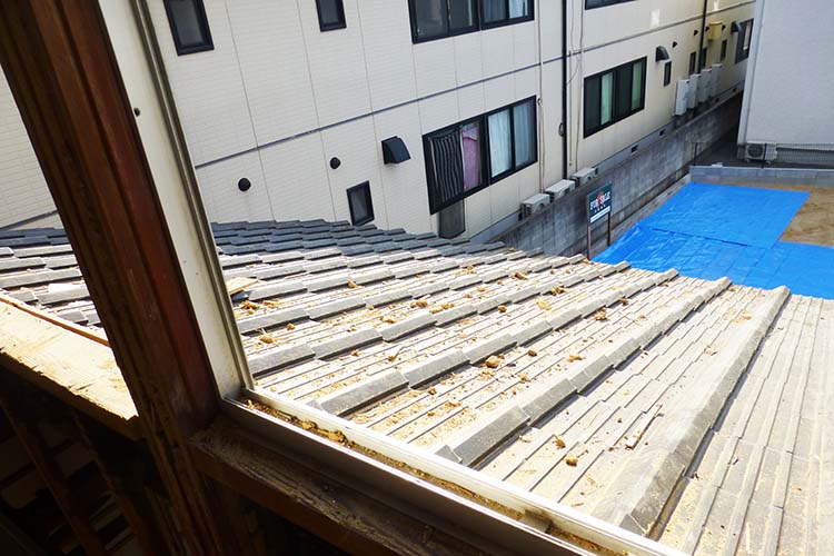 本日は、屋根瓦の撤去と、水廻りのコンクリートの土台解体工事が進められていました。