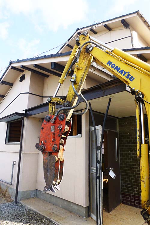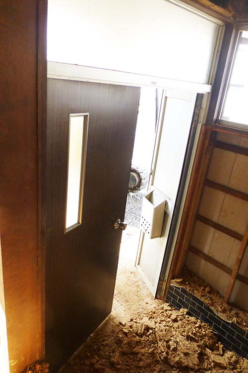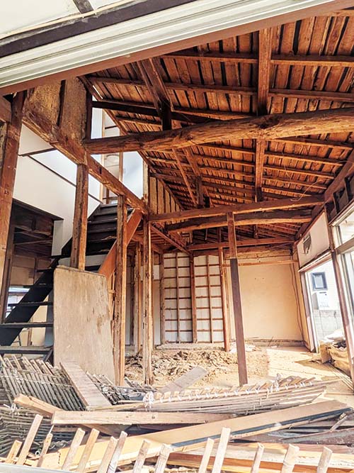 ちょうど玄関廻りを解体しているところにお邪魔したのですが、現場の皆さんとても優しい方々で、キリのいいところまで作業を終えた後に建物内に入って写真を撮らせてくださいました! 作業中の皆さん、ありがとうございます!