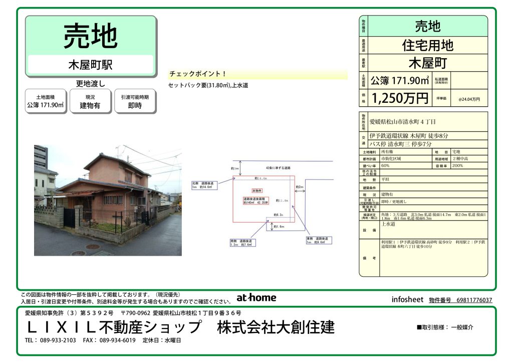 【2026.02.03 価格改訂】清水町4丁目 売土地 1,250万円