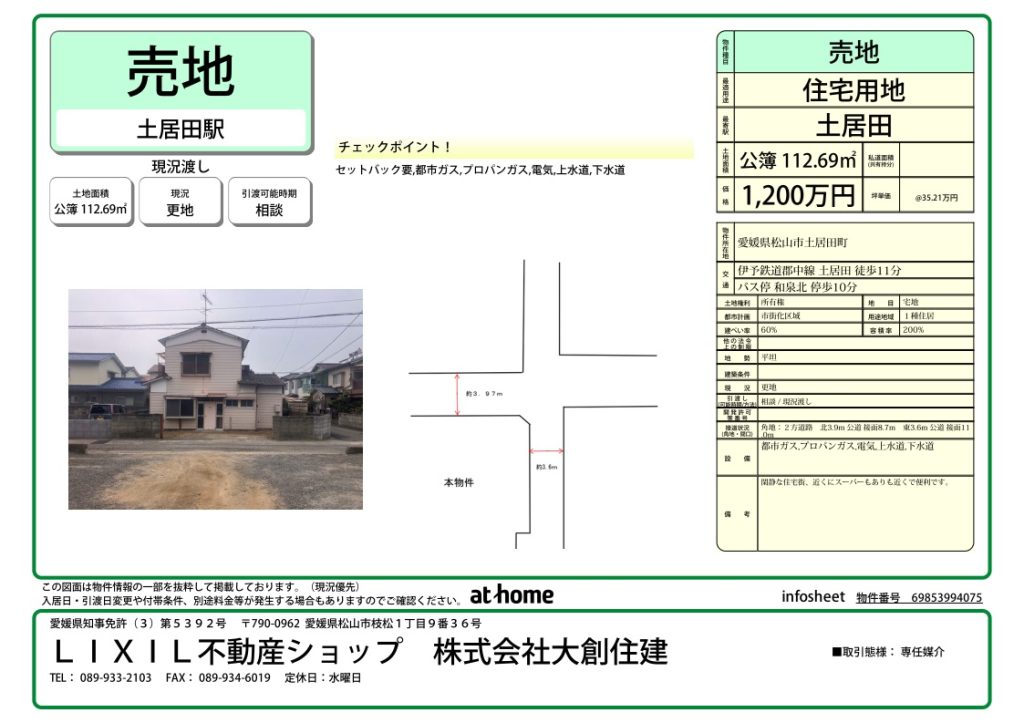【2025.10.18 価格改訂】土居田町 売土地 1,200万円