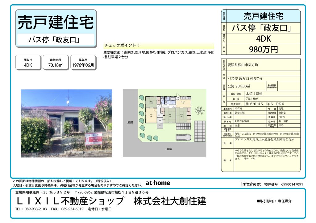 【NEW】東方町 売住宅 980万円