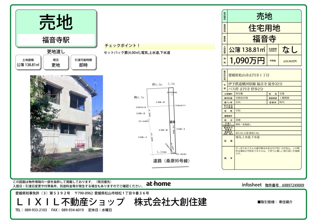 【NEW】正円寺町 売土地 1,090万円