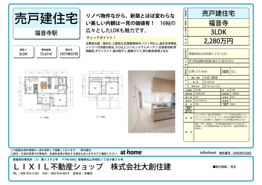 【2025.11.13 価格改訂】星岡5丁目 売住宅 2,280万円