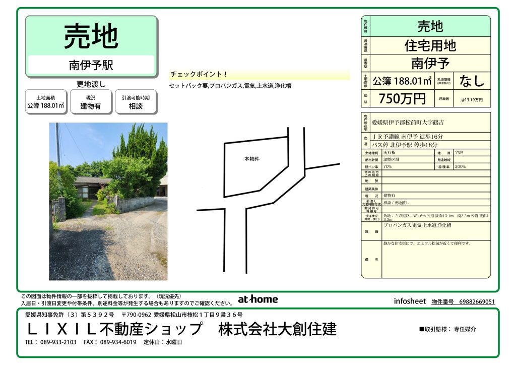 【2026.01.16 価格改定】松前町鶴吉 売土地 750万円