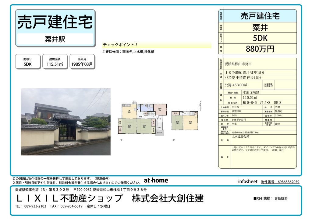 【2026.1.22 価格改訂】夏目 売住宅 880万円